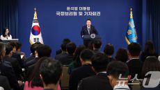 (서울=뉴스1) 박지혜 기자 = 윤석열 대통령이 29일 서울 용산 대통령실청사 브리핑룸에서 열린 국정브리핑 및 기자회견에서 취- 2024.08.29 13:47