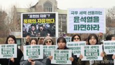 [서울=뉴스핌] 양윤모 기자 = 28일 오전 2025학년도 입학식이 열린 서울 서대문구 이화여대 정문 앞에서 '윤석열 파면!- 2025.02.28 16:47