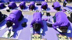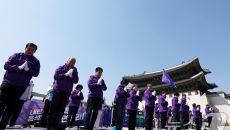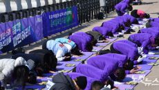윤석열 대통령 파면 기원하며 159배하는 이태원 참사 유가족