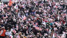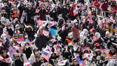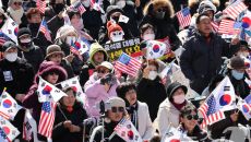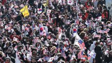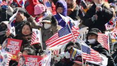 윤석열 대통령 탄핵 반대 집회에서 태극기 흔드는 지지자들