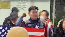‘캡틴 아메리카’ 복장 한 윤석열 지지자 경찰서 문 깨고 난입 시도해 현행범 체포