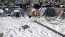 ‘윤석열 선고’ 지연 속 폭설마저 내린 단식 텐트촌…“금요일엔 꼭”