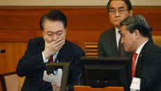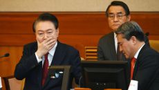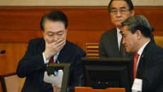 대심판정에서 눈 질끈 감는 윤석열 대통령