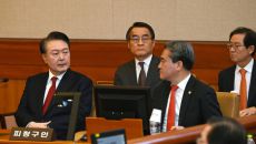 헌법재판소 대심판정에서 대화하는 윤석열 대통령