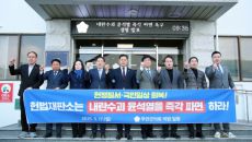 전남 무안군의회가 17일 긴급 성명을 내고 윤석열 대통령의 즉각 파면을 촉구했다. 무안군 의원들은 이날 군의회 앞에서 긴급 성- 2025.03.17 16:36