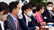 이준석 당대표-김기현 원내대표, 김태흠 의원 면담