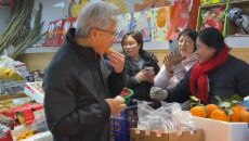 깐부치킨 먹던 젠슨황, 상하이 시장서 과일사고 ‘홍바오’ 세례