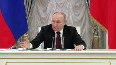 [뉴욕=뉴스핌]김근철 특파원=블라디미르 푸틴 러시아 대통령이 25일(현지시간) 우크라이나 군부에 권력을 장악하라고 촉구했다.- 2022.02.26 00:56