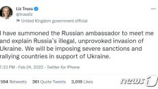 (서울=뉴스1) 정윤영 기자 = 영국 외무장관이 러시아 대사를 소환해 러시아의 "불법적이고 정당한 이유가 없는 우크라이나 침공- 2022.02.24 20:37
