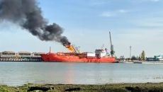 [서울=뉴시스] 구자룡 기자 = 우크라이나 오데사주 이즈마일항에 정박해 있던 튀르키예의 액화석유가스(LPG) 운반선 오린다호가- 2025.11.18 03:38
