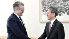 (서울=연합뉴스) 오수진 기자 = 김홍균 외교부 1차관은 3일 종로구 외교부 청사에서 토비아스 린트너 독일 외교부 정무차관을- 2025.04.03 16:55
