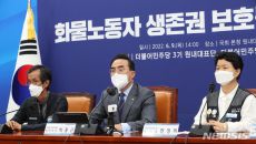 기사내용 요약 총파업 사흘째, 화물노동자 생존권 보호 위한 간담회 박홍근 "尹정부 대응 유감…생존권 보장 TF 구성하겠다" 민- 2022.06.09 16:13