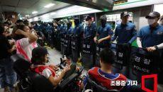전장연, 출근길 시위 벌이다 ‘강제 퇴거’…명동역 1시간 무정차 통과