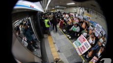 전장연 시위에 서울 지하철 4호선 명동역 무정차 통과