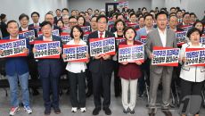 피켓 시위하는 송언석 원내대표와 국민의힘 의원들