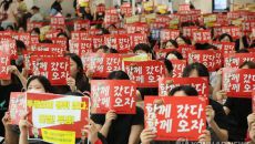 “허프 졸속매각 중단, 교섭 나서라”…한겨레 앞 시위 나선 자회사 노조