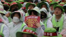 [서울=뉴스핌] 최수아 기자 = 양대노총이 임금 인상과 장시간 노동 해결 등을 요구하며 총파업을 선언한 전국보건의료산업노동조합- 2025.07.21 15:59
