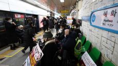 출근길 전장연 지하철 탑승 시위…혜화역 하행선 무정차 통과