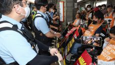 전장연 시위에 지하철 4호선 혜화역 오이도행 무정차 통과