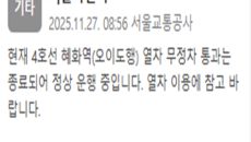 현재 열차 정상 운행 중 [파이낸셜뉴스] 전국장애인차별철폐연대(전장연) 시위로 서울 지하철 4호선이 혜화역을 한때 무정차 통과- 2025.11.27 09:11