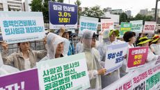 [서울=뉴스핌] 조준경 기자 = 전국보건의료산업노동조합 산하 대한적십자사 본부지부가 임금 인상과 장시간 노동 해결 등을 요구하- 2025.07.17 11:48
