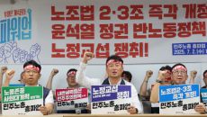 [세종=이데일리 서대웅 기자] 전국민주노동조합총연맹(민주노총)이 노동조합법 2·3조 개정(노란봉투법)과 윤석열 정권 반노동 정- 2025.07.16 06:00