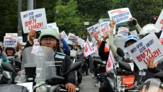대통령실 앞에 모여 파업대회 갖는 라이더들