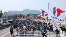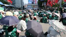 뙤약볕 아래 최저임금노동자 민주노총 공동파업대회