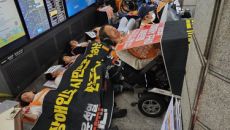 전장연, 국정기획위 출범 맞아 경복궁역 승강장서 시위