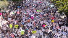 (로스앤젤레스=연합뉴스) 임미나 특파원 = 미국 전역에서 지난 14일(현지시간) 열린 '트럼프 반대 시위'에 수백만 명이 참여- 2025.06.16 03:39