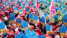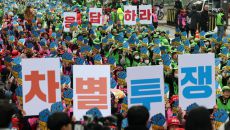 급식·돌봄 비정규직 7천 명 국회앞 파업 집회…"차별철폐"