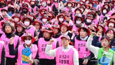 급식·돌봄 비정규직 7천명 국회앞 파업 집회…"차별철폐"