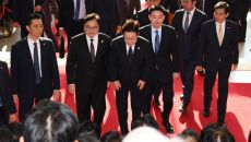국민의힘 의원들 침묵시위 앞 지나는 이재명 대통령