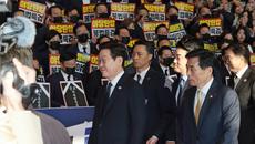 이대명 대통령 시정연설 참석... 피켓 시위 나선 국민의힘