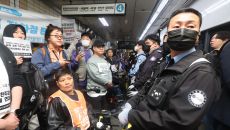 전장연 시위에 1호선 서울역 상하행선 무정차 통과