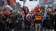 與 "APEC 앞두고 극우 시위대 경주로 집결…반민주주의적 행태"
