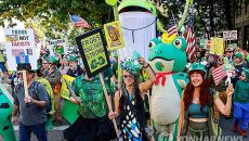 "유치할수록 효과적"…美노킹스 시위에 개구리·공룡 신스틸러