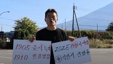 전한길, 일본 후지산 앞에서 1인 시위..."이재명 정권 친중화"