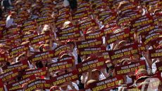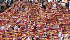 '총파업' 붉은 머리띠 맨 금융노조 광화문에…주 4.5일 촉구