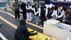 (태안=뉴스1) 최형욱 기자 = 충남 태안해양경찰서는 3일 한서대학교 해양 경찰학과 재학생 28명이 마검포 파출소를 견학했다고- 2025.12.03 17:04