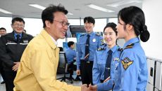 [인천=뉴스핌] 청사사진기자단 = 김민석 국무총리가 21일 오전 인천시 중구 인천항 해상교통관제센터(VTS)를 찾아 직원들을- 2025.11.21 10:07