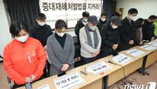 중대재해처벌법 무력화 반대 기자회견 '묵념'