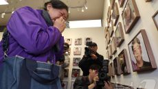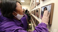 [서울=뉴스핌] 이길동 기자=26일 서울 종로구 별들의집에서 이태원 참사 희생자 외국인 유가족들이 고인의 사진을 어루만지고 있- 2025.10.26 16:27