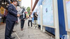 (서울=뉴스1) 민경석 기자 = 윤호중 행정안전부 장관이 4일 오후 서울 용산구 이태원참사 현장을 살펴보고 있다. 2025.8- 2025.08.04 13:32