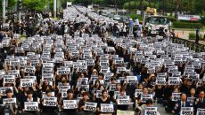 제주에서 중학교 교사가 학생 가족의 민원에 시달리다 숨진 사건과 관련해 교원단체들이 진상 조사와 대책 마련을 촉구하는 대규모- 2025.05.27 18:03