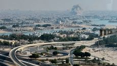 9일 이스라엘이 카타르 수도 도하에서 팔레스타인 가자지구 이슬람 무장단체인 하마스 지도부를 공습한 직후 건물에서 검은 연기가 피어오르고 있다. 2023년- 2025.09.10 00:55