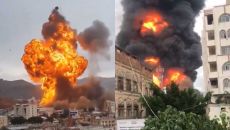 이스라엘이 예멘 수도 사나의 석유 시설과 발전소에 공습을 퍼부었다. 도심에는 건물보다 높은 불기둥이 치솟고 92명의 사상자가- 2025.08.25 17:27