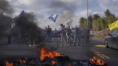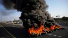 ▲ 17일(현지시간) 이스라엘 내각의 가자시티 장악 방침에 반대하는 시위대가 예루살렘의 고속도로를 점거하고 불을 질렀다. 이스- 2025.08.18 04:43