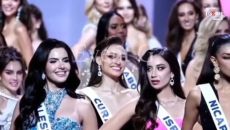 미스 유니버스 행사장에서 이스라엘 대표와 팔레스타인 대표가 나란히 서 있는 장면이 카메라에 포착되면서, 이스라엘 대표가 팔레스- 2025.11.13 10:02
