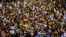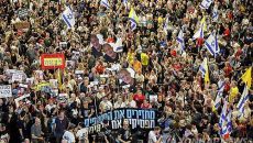 이스라엘 군사작전 발표에… 수만명 거리로